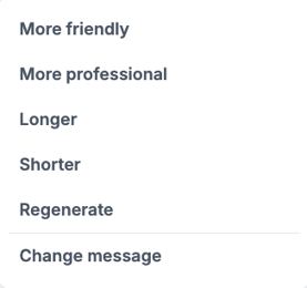 You can have the AI rewrite the message based on the options available or click "Change message" to start your prompt over.