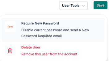 5. In the "User Tools" dropdown, on the right side of the page, select "Require New Password".