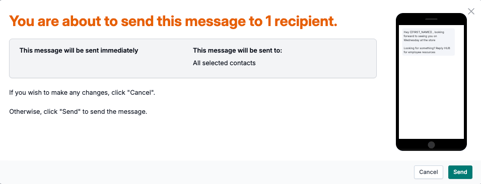 Once everything looks good, click Send Now to deliver your message. After clicking Send Now a final modal will appear, asking you to confirm you want to send the message.